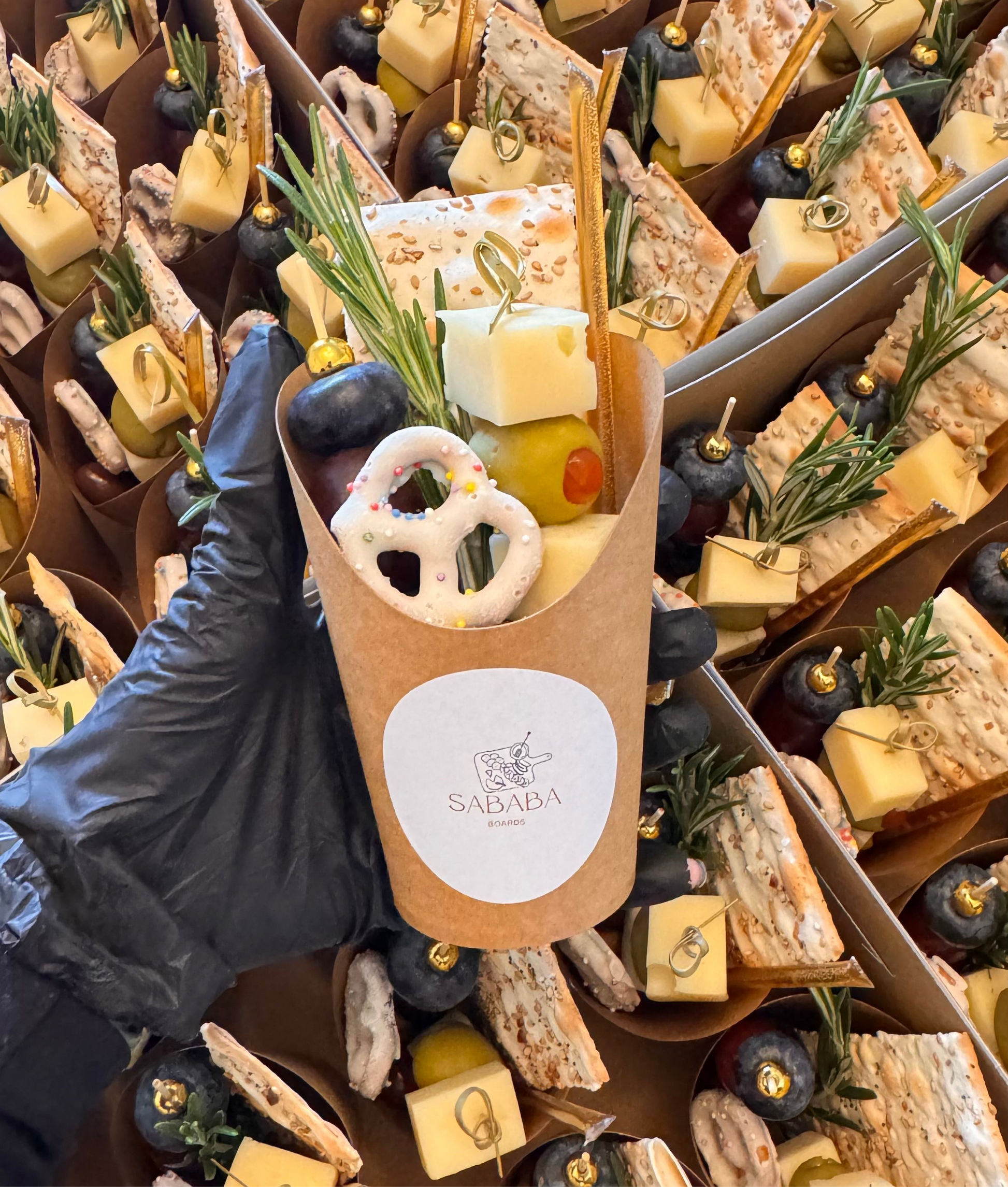 Each cup comes with an arrangement of different ingredients. You can always expect 2-3 kinds of cheese, fresh fruits and nuts.